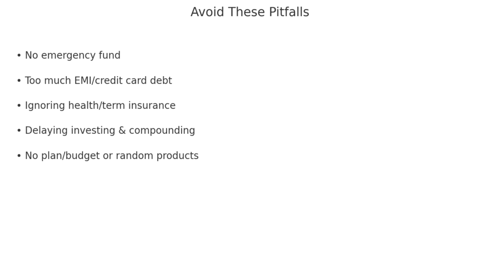 Simple habits drive outcomes. Build a cushion, control debt, protect with insurance, invest early, and follow a plan aligned to goals.