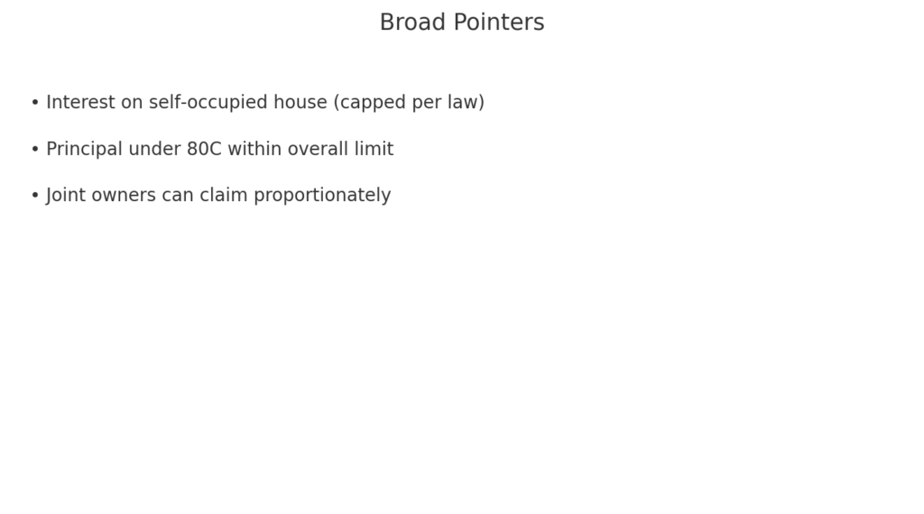 - Claim stamp duty/registration under 80C (conditions apply).
